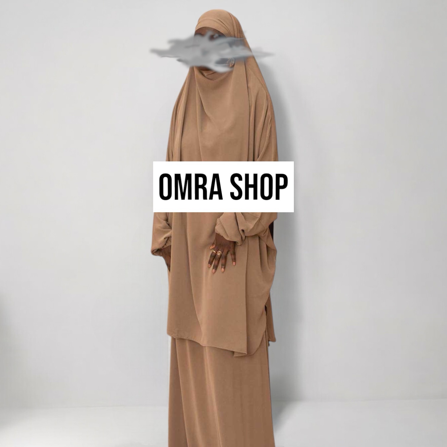 Ensemble 2 pièces : cape jilbab et jupe. Le tissu est léger, opaque et très agréable à porter.